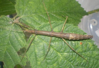 This has long been one of my favourite phasmids to keep in culture. It is a far cry from being 'showy' and is anything but large, but is somehow, for me at least, just as fascinating. The adult females are only around 5cm in body length, with the males being slighty shorter than this.This species has been in culture since 1980 (PSG 32). The small size, and lack of wings in both sexes means that this species does not need as much space to moult as some of its larger cousins and is therefore ideal to keep in (relatively) small containers.
