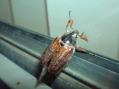 This was sent to my phone by a friend last night, with a request for identification. It's a cockchafer (Melolontha melolontha), quite well known for being attracted to lighted windows.