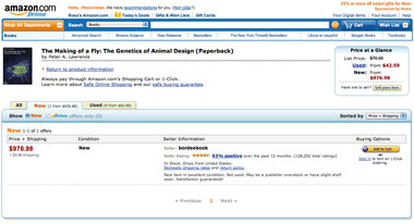 If you were shopping for a new copy of Peter Lawrence’s The Making of a Fly — a classic work on developmental biology — on Amazon recently, you might've gotten quite a shock. The book was priced at $23,698,655.93 (plus $3.99 shipping)! What happened?