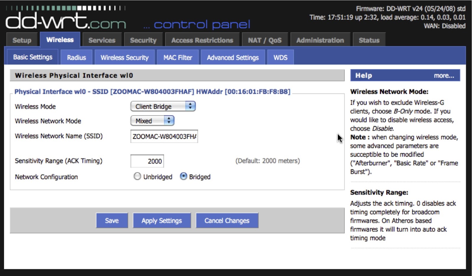 Most routers designed for home use are capable of acting as a client bridge, although the software inside the router (the firmware) often prevents you from using the device in this fashion. This problem can be overcome by replacing the firmware that ships with the router by one of several alternatives, I used DD-WRT for this project but OpenWRT and others have the same functionality.
