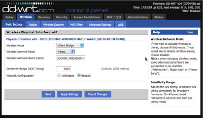 (aka how to get Ethernet devices attached to a wireless network without awkward cable runs)Previously I wrote about an Arduino based temperature and light sensor that could send it's reading to the web over Twitter. This made use of the Ethernet shield that is available for the Arduino. This post describes how to connect this wired Ethernet device to a wireless network using a wireless router.